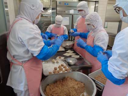 約100個ずつ鉄板に並べスチームコンベクションオーブンで