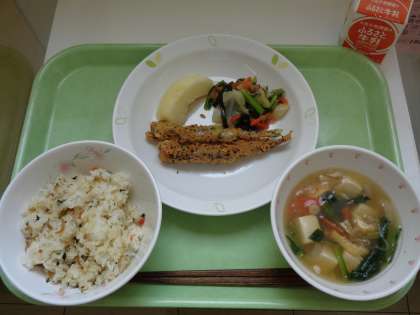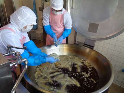 2校分を黒ごま→青のり→青のり→黒ごまの順で揚げ