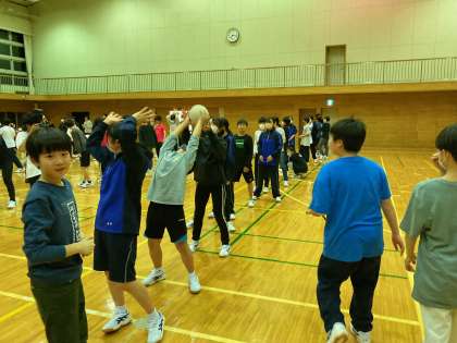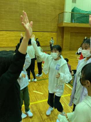 広い体育館を使った楽しいレクの時間です。ボール送り、整列ゲーム、直線リレーをしています。学級対抗での盛り上がりは、さながら運動会の前哨戦です!