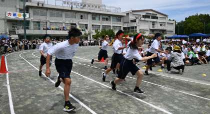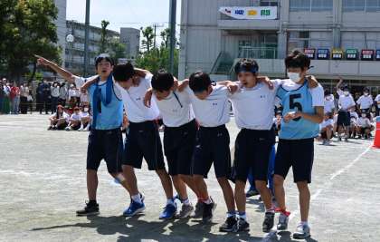 本日、爽やかな晴天の下、土曜日から順延した運動会を開催しました。スローガン「力戦奮闘」にふさわしく、どの学年も全力を出し切る姿がありました。また、自らの係を強い責任とやりがいをもって取り組む姿も喜多見中の伝統。表舞台のみならず裏舞台でも、活躍する生徒たちの姿が今年も光りました。また、今回は全校生徒の応援席にもテントを張りました。朝早くから多くの保護者の皆様にご協力いただき、感謝です。第43回運動会も大成功の裡に幕を閉じました。