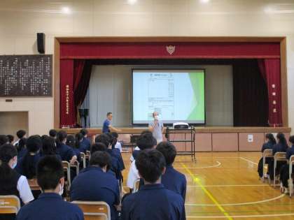 本日1時間目に1年生が2学期より実施する農業体験(大蔵大根の栽培)についてガイダンスが行われました。