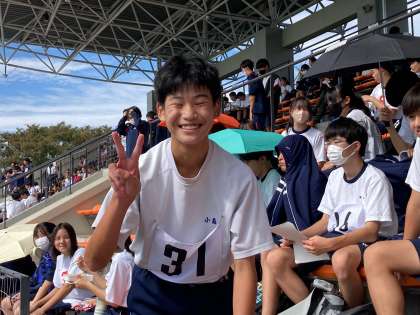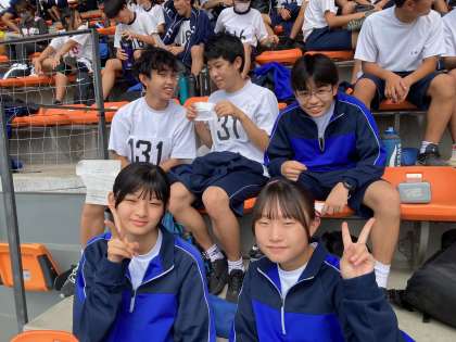 今日は絶好の陸上競技日和。区総合運動上では29校の代表生徒が躍動しています。我が喜多見中生もベストを尽くしています!