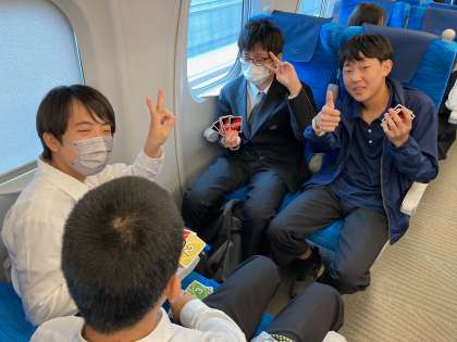 本日より2泊3日の修学旅行。既に新横浜を発ち京都へ向かう途中です。車内では早速ほどほどに盛り上がって楽しい雰囲気です。
