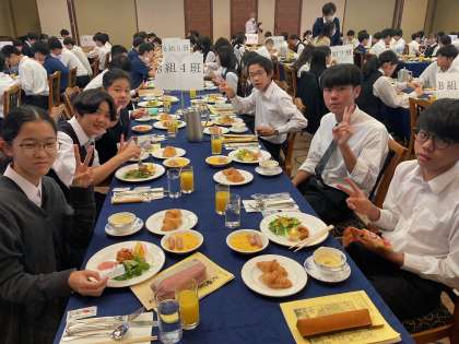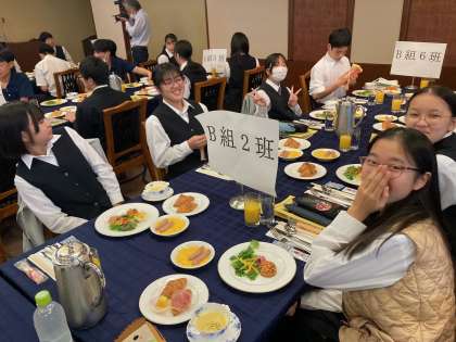 今朝もみんな元気。ホテルでの最後のお食事を済ませ、昼食までタクシー班行動です。雲間には青空も見えています!