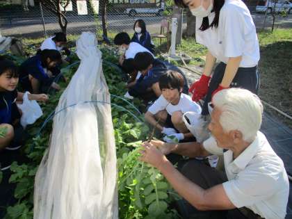 今日は、育てた苗を間引く意味、間引いたものも大切に頂くことを学びます。