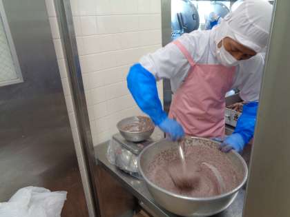ゆかりが入っているので、白かった衣があっという間にピンク色になりました!