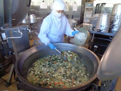韓国ではわかめ以外の材料として牛肉が一般的ですが、給食では鶏肉を使い、野菜や豆腐を加えて具だくさんにしました!