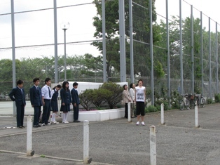 生徒会役員が「おはようございます」のあいさつの声かけをしています。