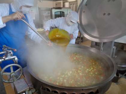 給食のカレーは400〜500人分を一緒に作るので、家庭で作るものとは違った美味しさになります。