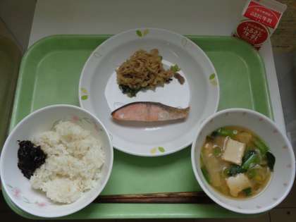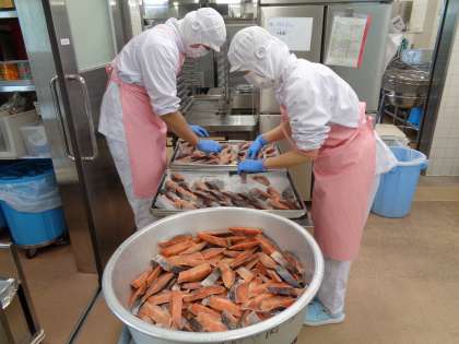 明治22年頃の給食から、鮭の塩焼きを提供しました。
