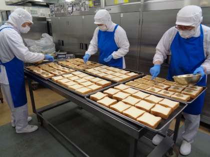 すりごま・バター・砂糖を混ぜ合わせたものを、1枚1枚の食パンに丁寧にぬっていきます。