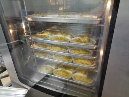 卵焼きをスチームコンベクションオーブンで焼いています。