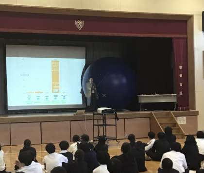 昔は、茶碗を割ったり、ヒビが入った時は、繕って使っていたことや、食器を洗う時に排出するCO2は、1年で約13キロ(写真の風船)にもなることを学びました。