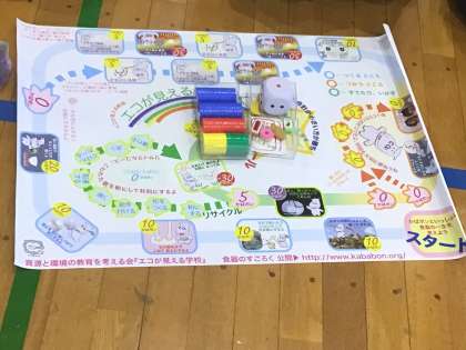 その後、グループに分かれて食器の一生のすごろくをして、排出するCO2を考えました。