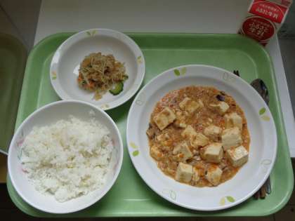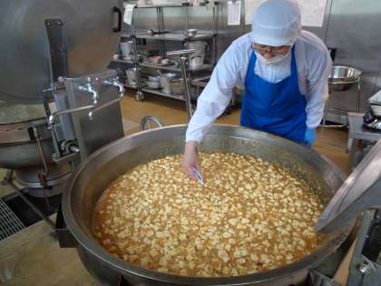2校分で約180Kgの豆腐を使って、麻婆豆腐を作りました。