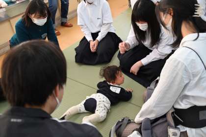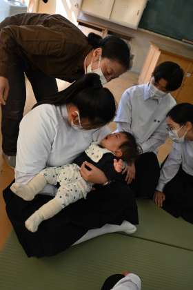 授業の始めに赤ちゃんのぬいぐるいを抱っこした時は