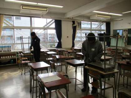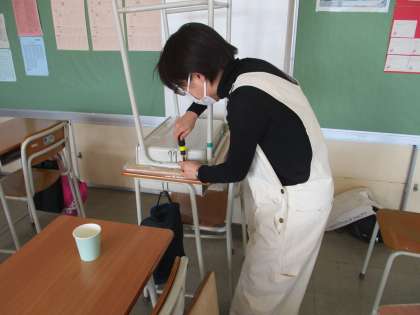 お忙しい中、お父さん、お母さん 机の天板張替えのボランティアに