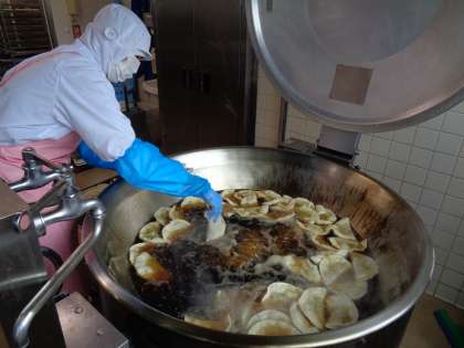 1度に80〜100個のジャンボぎょうざを揚げました!