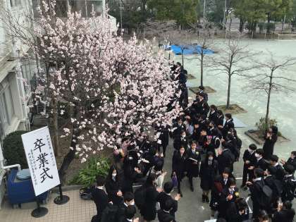 保護者、先生、在校生に見送られて3年生が巣立って行きました。