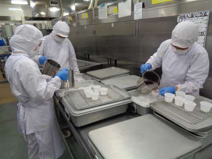 大きな計量カップで1つずつゼリー液を流していきます。