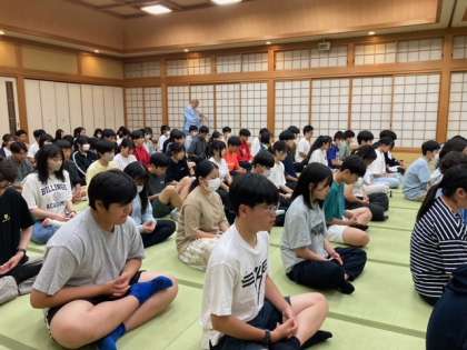 今夜の宿、信貴山観光ホテルに予定通り到着。大広間で夕食をいただきました。その後、朝護孫子寺にて坐禅体験。静と動の差が激しい…