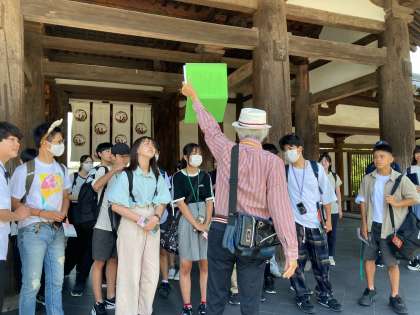 法隆寺を全員でまわり、これからコース別に京都方面に向かいます。班別行動を始めます。