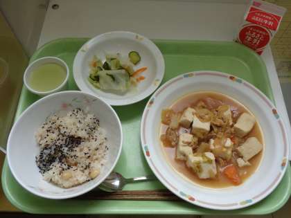 豆腐は汁物よりも大きめに切り、下ゆでして、煮崩れないように丁寧に混ぜ合わせて作りました。