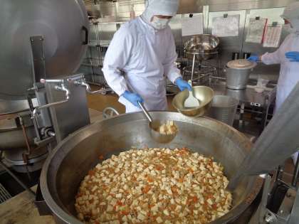 肉豆腐は京都府の郷土料理で、牛肉と豆腐、ねぎを煮たシンプルな料理です。給食では豚肉で作りました。