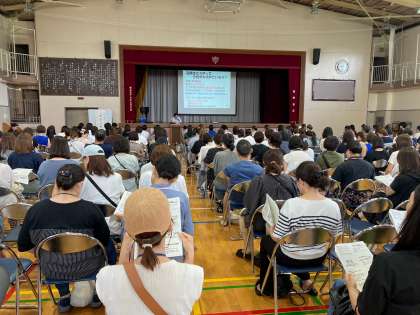 土曜授業日の今日、保護者の皆様を対象にした進路説明会を実施しました。1年生や2年生の保護者の方も複数参加いただき、会場の体育館はほぼ満席となりました。