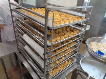 車麩は卵液に浸し、天板に並べてオーブンで焼いてから、他の具材と炒め合わせました。