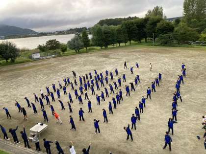 今朝の河口湖の気温は、な、なんと13.2℃。天然のクーラーで皆、爽やかに目覚めました。ラジオ体操をこなし、朝食をいただいています。