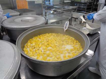 栗は米の上にのせて炊き、中心温度を測ってから、ご飯と混ぜ合わせました。