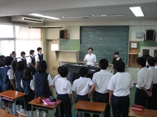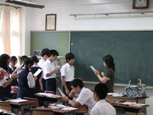 左は音楽で二人の教師のよるTT授業です。右は英語で英文暗唱です。