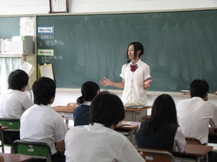 本校の卒業生を招いて、夏休みを控えての過ごし方や勉強の進め方、そして進路選択について話を聞きました。
