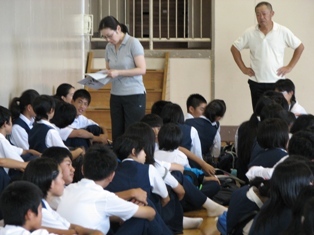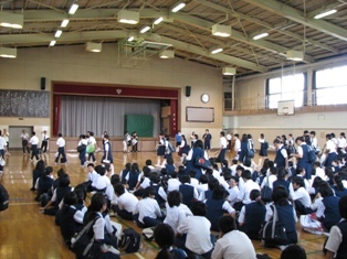 地区別に下校し、地区代表が学校(本部)に報告をします。