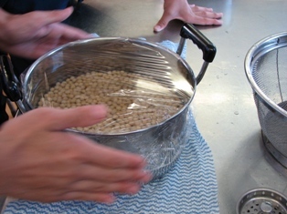 今日は、大豆を洗い、水に浸した後、冷蔵庫に入れました。