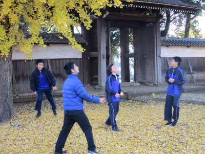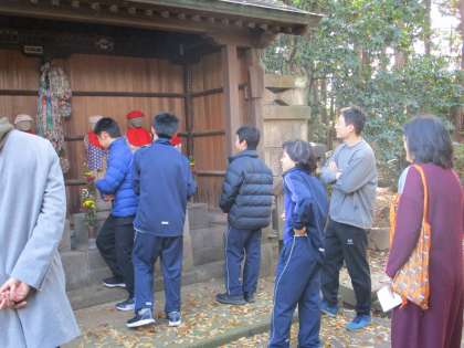 お堂や石碑、仏像、立派な銀杏の木や大きな落ち葉など
