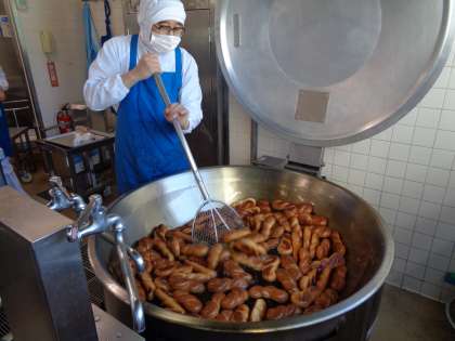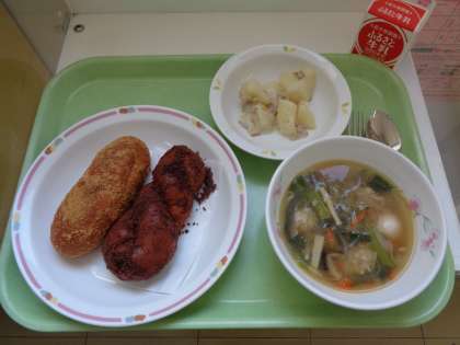 今日は2色揚げパンなので、2校分で1850個のパンを約2時間かけて揚げました!
