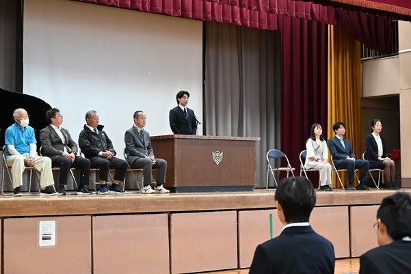 令和7年度の着任式および始業式を行いました。着任式では、個性あふれる新しい教職員一人ひとりから生徒たちへの熱いメッセージが届けられました。また、始業式では校長から「自己実現の達成 ~壁を越えて~ 」という今年度の学校スローガンが披露され、「習慣」についての講和がありました。写真2枚目は、2年生の新しい学級での様子の一コマ。出会いを大切にしながら、引き続き充実した毎日にしていこう!