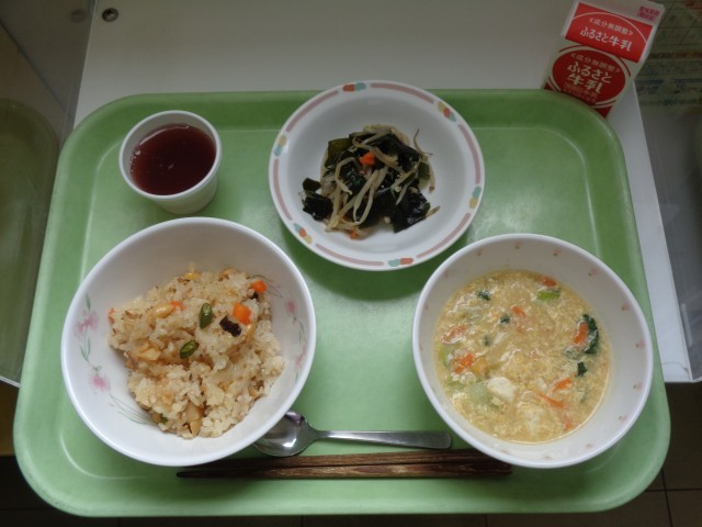 給食ではちまきの中身と同じ「中華おこわ」を作りました。