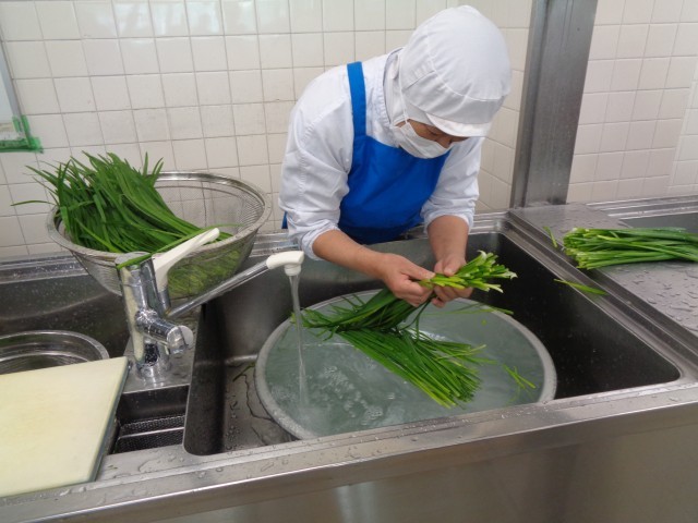 給食では野菜は流水で3回洗うことになっています。