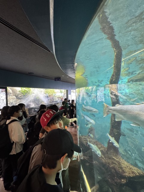 朝早くからご準備頂いたお弁当を食べた後、海のない県の唯一の水族館である富士湧水の里水族館の見学です。