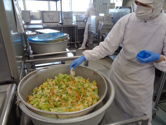 ドレッシング等と和える時は、温度が20℃以下になっていることを確認することになっています。