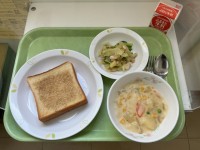 【献立】ドライカレートースト牛乳ミネストローネチーズ入りフレンチサラダカフェオレ...