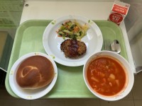 【献立】ミルクパン牛乳ミネストローネアップルチーズハンバーグコーンサラダ【今日の...