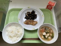 【献立】有機米ごはん牛乳吉野汁白身魚のあずま煮ひじきと大豆の炒め煮【今日の給食室...