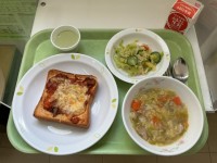 【献立】ピザトースト牛乳ABCマカロニスープツナサラダ抹茶ミルクプリン【今日の給...