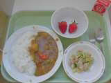【献立】 カレーライス 牛乳 ビーンズサラダ いちご 【食材産地】 にんに...