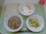【献立】 ソフトめんのカレーあんかけ 牛乳 甘酢和え フルーツヨーグルト ...