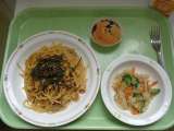 【献立】 和風スパゲッティ 牛乳 じゃこサラダ ブルーベリーマフィン 【食...